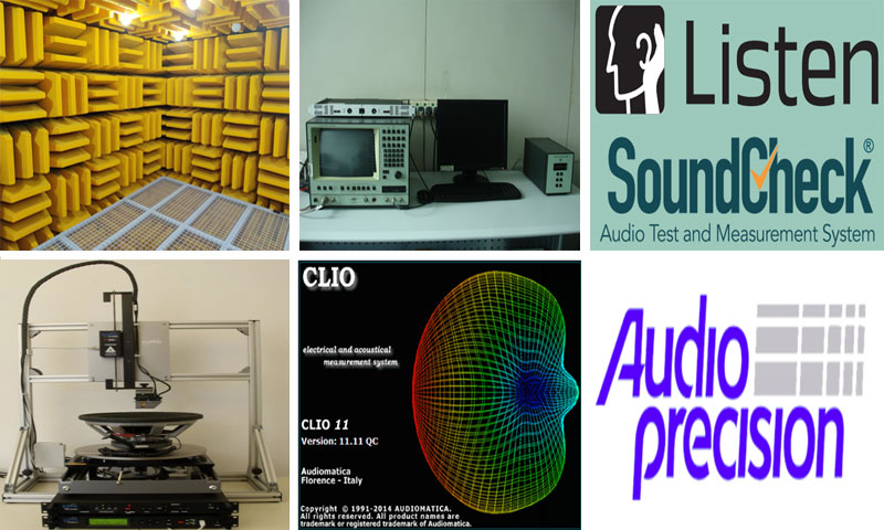1.无响室(Anechoic Chamber) 2.B&K 2012 3.Klippel R&D System 4. SoundCheck v18 5.Clio v11 6. Audio Precision (AP)